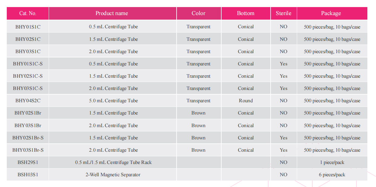 The unique design and high performance quality of the centrifuge tube can ensure the storage, operation and centrifugation of precious samples. Centrifugal tube can be widely used in molecular biology, clinical medicine and biology; The centrifuge tube is made of transparent medical grade material polypropylene (PP). It is free from heavy metal.The pressing flat cover design is easy to open and close, more ergonomic design, and can be operated with one hand; The processed materials can withstand a variety of common solvents, acidic and alkaline reagents. The microcentri fuge tubes made of polypropylene can be autoclavized at 121 °C, and can also withstand temperatures as low as -80°C. The microcentrifuge tubes are made of high-quality raw materials and polished to ensure that the user can clearly observe the sample, and the design and material are perfectly integrated. Microtubes can be centrifuged at centrifugal forces up to 20,000g.