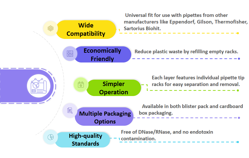 Bioer Technology’s Reload Pipet Tips are crafted with a commitment to environmental sustainability. These tips are available in 200 µL, 1000 µL, and 1000 µL extended sizes, catering to various laboratory requirements.