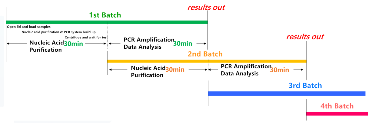 ● Flexible throughput: The amplification area operates with 4 independent sections, allowing for continuous, on-demand pipeline operations, processing 768 samples within 24 hours.