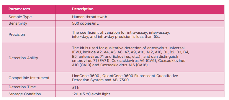 1. Enterovirus Universal, Enterovirus 71, Coxsackievirus A6, Coxsackievirus A10 and Coxsackievirus A16 nucleic acid Detection Kit (Fluorescent PCR)