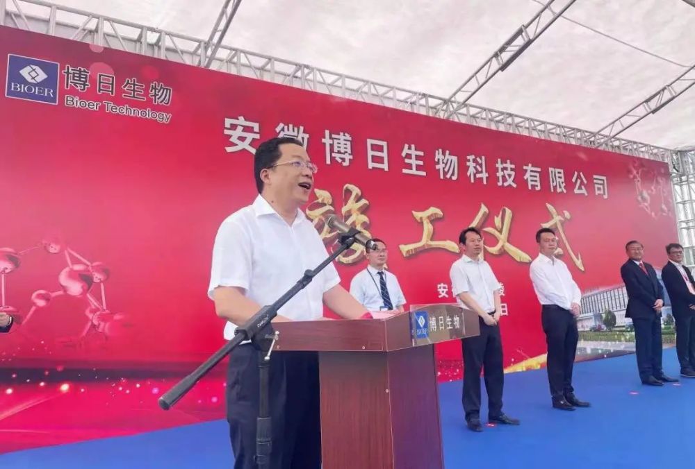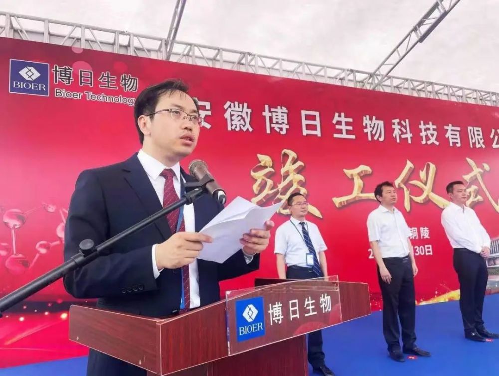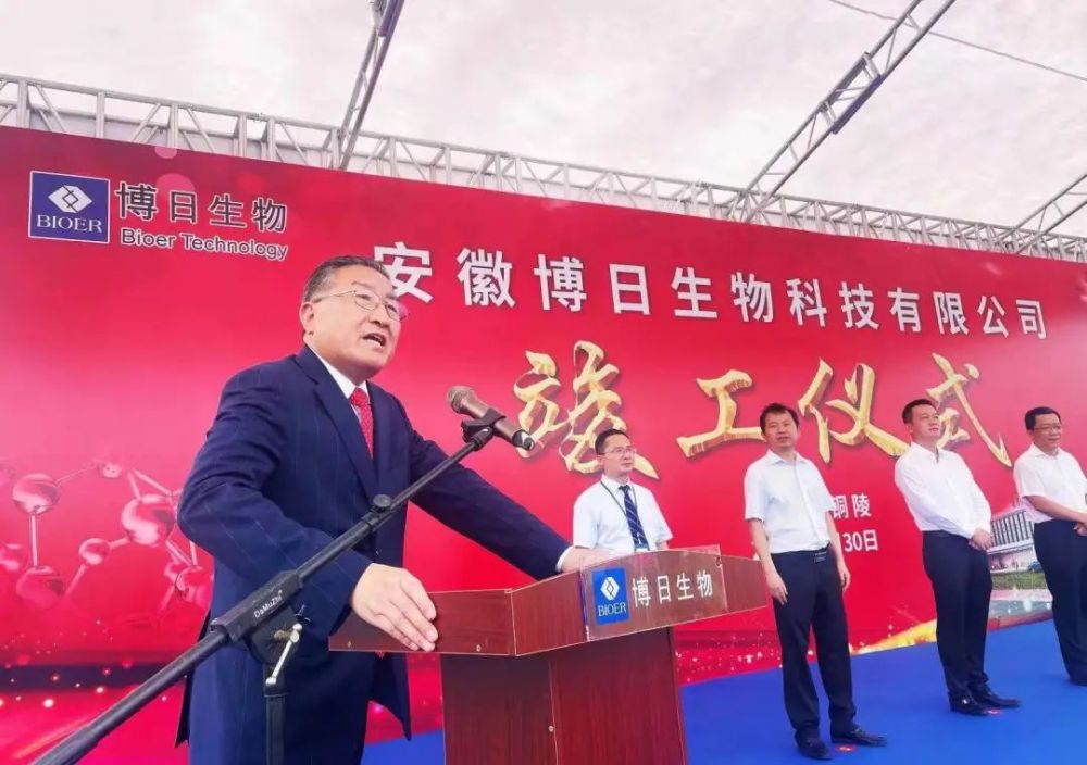 Ding Chun, Secretary of the CPC Tongling Municipal Committee and director of the Standing Committee of the Municipal People's Congress, he Xianhan, chairman of Hangzhou Bioer Technology Co., Ltd. and Anhui Bioer Biotechnology Co., Ltd., and song Haibo, vice president of the National Health Industry Enterprise Management Association and President of the medical laboratory industry branch, attended and delivered speeches. Kong Tao, deputy secretary of the municipal Party committee and mayor of the Municipal People's government, Wang Fajin, Secretary of the Yi'an district Party committee, Yao Guiping, deputy secretary of the Yi'an district Party committee and head of the District, and Zhou Changsheng, member of the Standing Committee and deputy head of the district Party committee, attended the meeting.